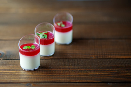 Vanilla panna cotta with raspberry served in a glass