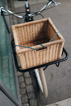 Stylish Bicycle with Handmade Wicker Basket for Charming Urban Transport Solution