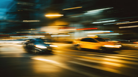 Experience an abstract visual journey capturing the essence of urban energy, where vibrant colors and motion blur create an immersive city ambiance.