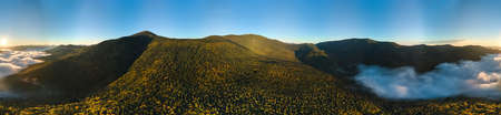 Panoramic beautiful mountains in sunrise