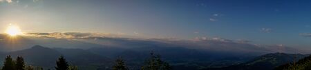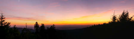 Dawn over the tops of the mountains. Summer landscape. Panorama.