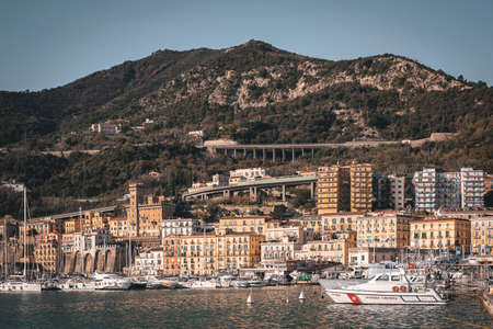 Salerno, Italy - August 19, 2019: View of the coast of Salermo in Italy