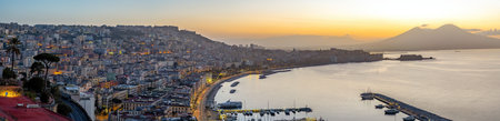 Panorama of the Gulf of Naples with the famous Mount Vesuvius before sunrise