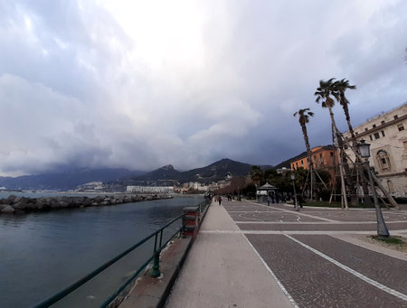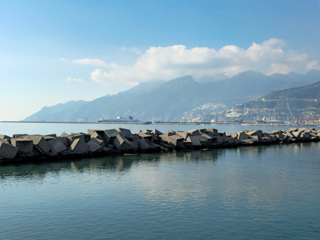 View of the Tyrrhenian Sea coast in Salerno, Italy.