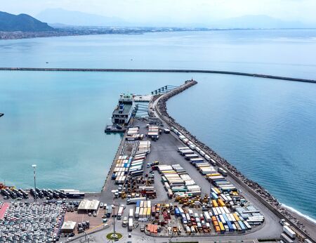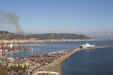 VIETRI SUL MARE, ITALY - 12 October 2019 view of the city of Salerno from a high point and its port in the foreground to mean a concept