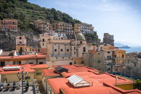 Cetara cityscape on coast of Amalfi of mediterranean sea in Italy