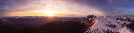 Beautiful panoramic Canadian Landscape View during a vibrant winter sunset. Taken on top of Zoa Peak near Hope, British Columbia, Canada.