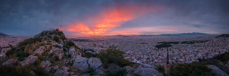 Evening view of Athens from Lycabettus hill, Greece.