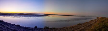 Magical sunset over the lake. Landscape panorama. View from above. Serene lake in the evening. Nature landscape