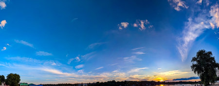 sunset panorama with clouds on a blue sky background