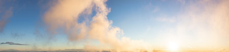 Beautiful Panoramic View of colorful cloudscape with blue Sky in Background during a sunny winter sunset. Taken in Vancouver, British Columbia, Canada.