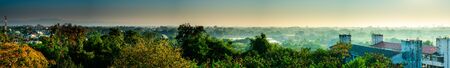 Panorama of Dramatic vibrant color with beautiful cloud of sunrise and sunset. Panoramic image.