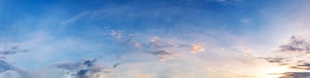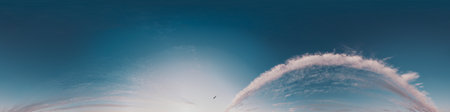 beautiful clouds in blue sky with evening sun. Seamless hdri panorama 360 degrees angle view with zenith for use in 3d graphics or game development as sky dome or edit drone shot