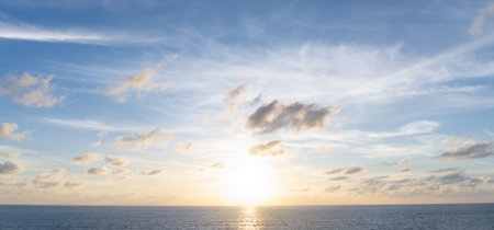 Beautiful morning or evening blue and orange sky with cloudy while sunsets or sunrises was taken at the sea used as natural background texture