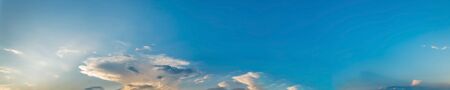 Panorama Sunset with ray light on clouds in a blue and orange sky in twilight time