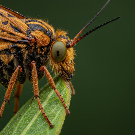 A detailed shot of a small insect on a flower or leaf, showcasing its intricate features and natural environment.