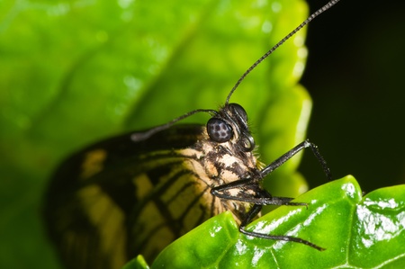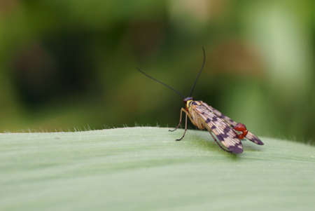 The macro of common scorpionfly (Panorpa communis) on leaf