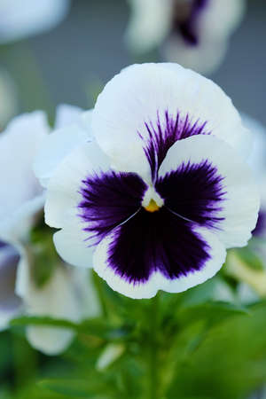 Viola tricolor pansy flowers in the garden close up