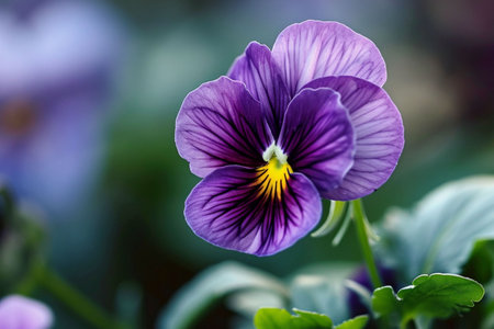 Viola plant violet flower in blossom arrangement with copy space