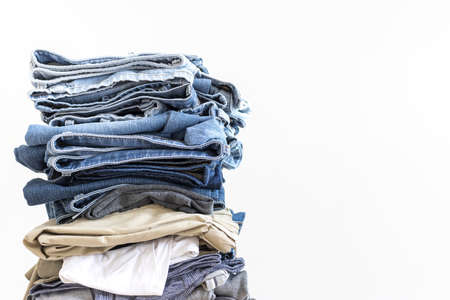 A set of folded jeans isolated on white background, flat lay.