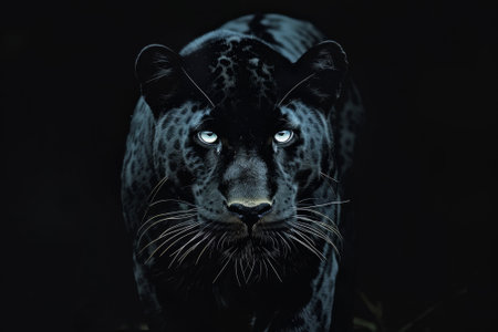 Majestic Black Panther Portrait with Piercing Gaze on Dark Background. Wildlife Photography