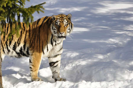 Tiger in the snow in the winter