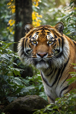 Close-up of a Sumatran tiger in a jungle