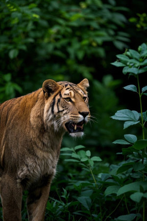 Big Tiger is standing in the forest - moody edit