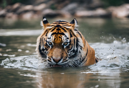 tiger walking in the water
