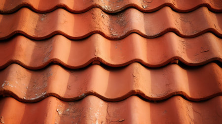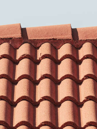 Red tiles roof texture architecture background, detail of house close up detail.