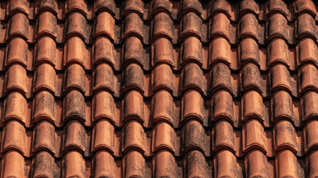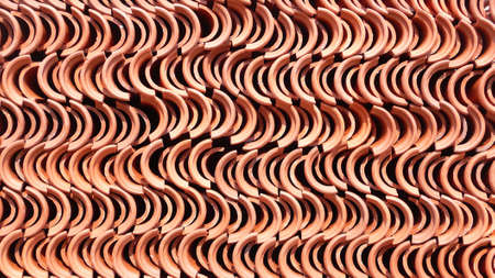 Old red ceramic tiles roof background. Abstract geometric pattern, Roof brick material.