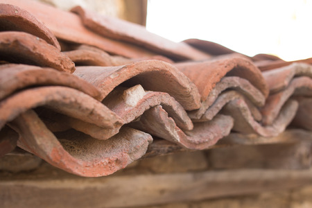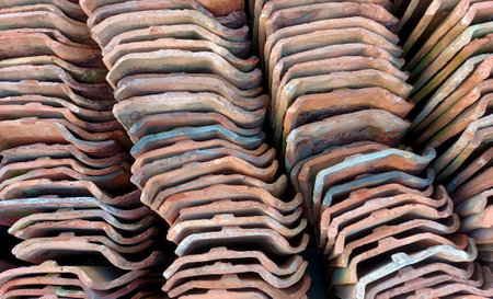 Piles of roof tiles made of pottery