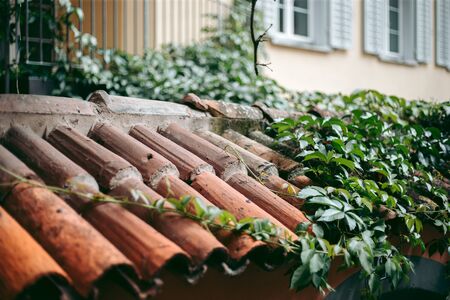 Old red roof tiles in european style