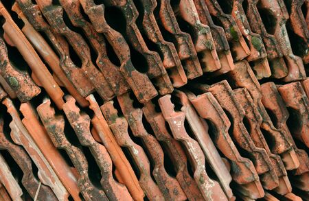 Closeup of weathered old dirty Italian clay tiles