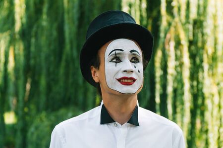 Moscow, Russia - September 10, 2016: A male mime in a black beret at the festival Bright people in the park Gorkogo at the City Day in Moscow