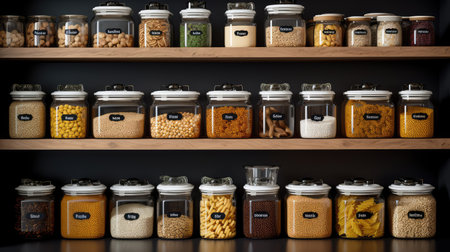 simple food storage system with clear jars and labels for easy identification, created with generative ai