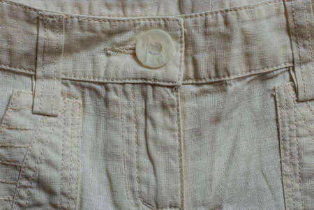 clothing items washed cotton fabric texture with seams, clasps, buttons and rivets, macro, close-up