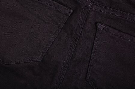 Jeans texture with pocket. Highly detailed closeup of black jeans. Cool background.