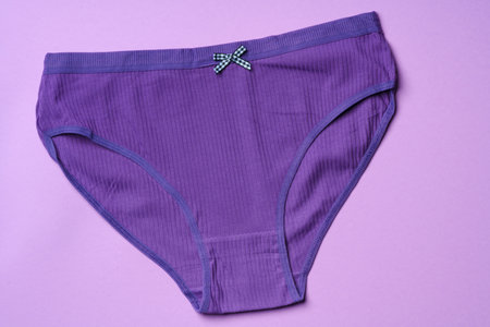 Lilac cotton women's panties on pink background. Beautiful lingerie. Fashionable concept. Beautiful lingerie. Flat lay.
