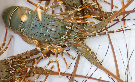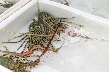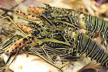 Sea fresh lobster at street market in Thailand. Seafood concept. Raw lobster for cooking, close up