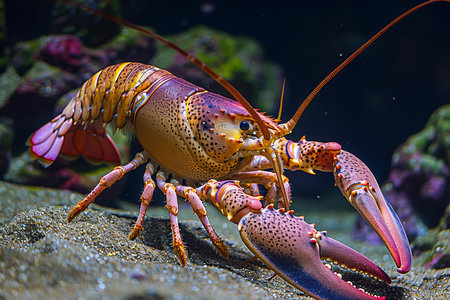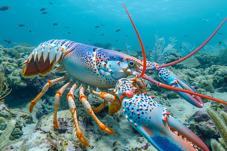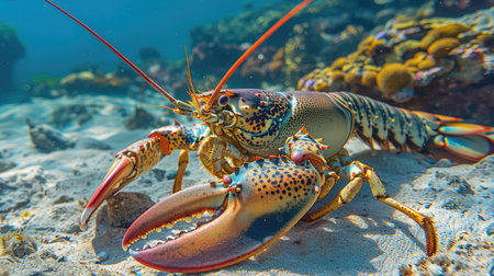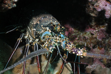 Lobster on a coral reef. Close-up view.