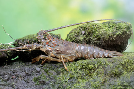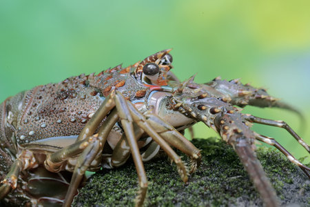 spiny lobster on the rock in the nature or in the garden