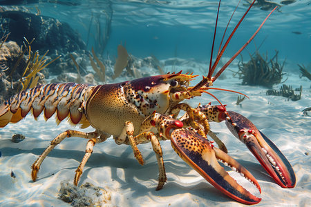Lobster in the Red Sea. 3D illustration. Natural background.