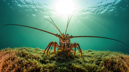 close-up of a spiny lobster in the sea
