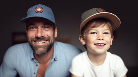 Generative AI : Fathers day Happy funny family son and dad with hat on holiday