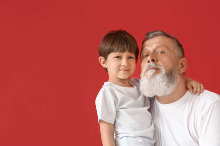 grandfather and grandson in the LED light infinity room, Family among the star concept.