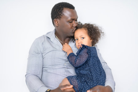 Black father kissing baby daughter. Happy family concept.