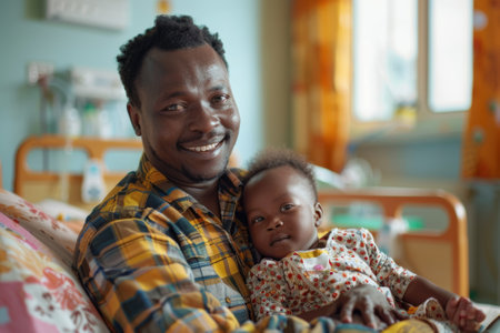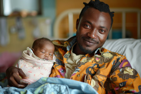 African American parent cradling their newborn baby. Unwavering parental affection, celebration of Father's Day.
