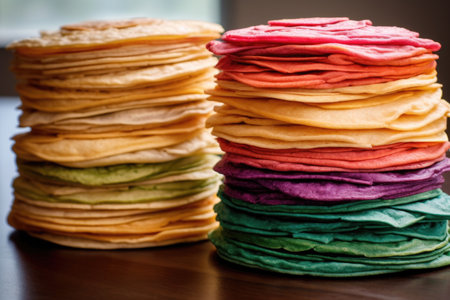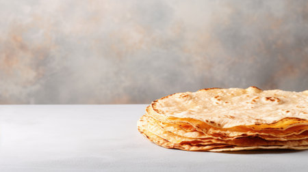 AI Generated. Stacked lavash bread on floured surface with warm light