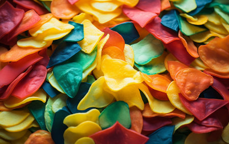 A stunning close-up capturing the golden-brown texture of crispy potato chips arranged in a vibrant pattern. Perfect for food-related projects.
